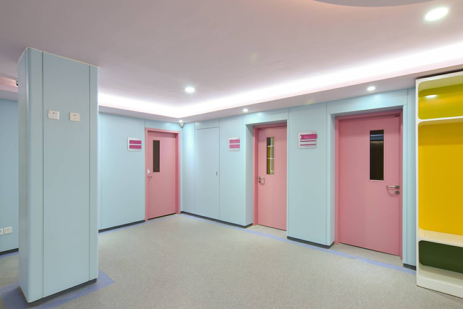成都智宸企业合规咨询有限公司将“情感化”的色彩应用在钢质门及墙板,置身于医疗环境中,"将人的情感与知觉放在第一位",使患者享受医院环境带来的真诚的人性化关怀,打造具有人性化色彩环境的医院空间。