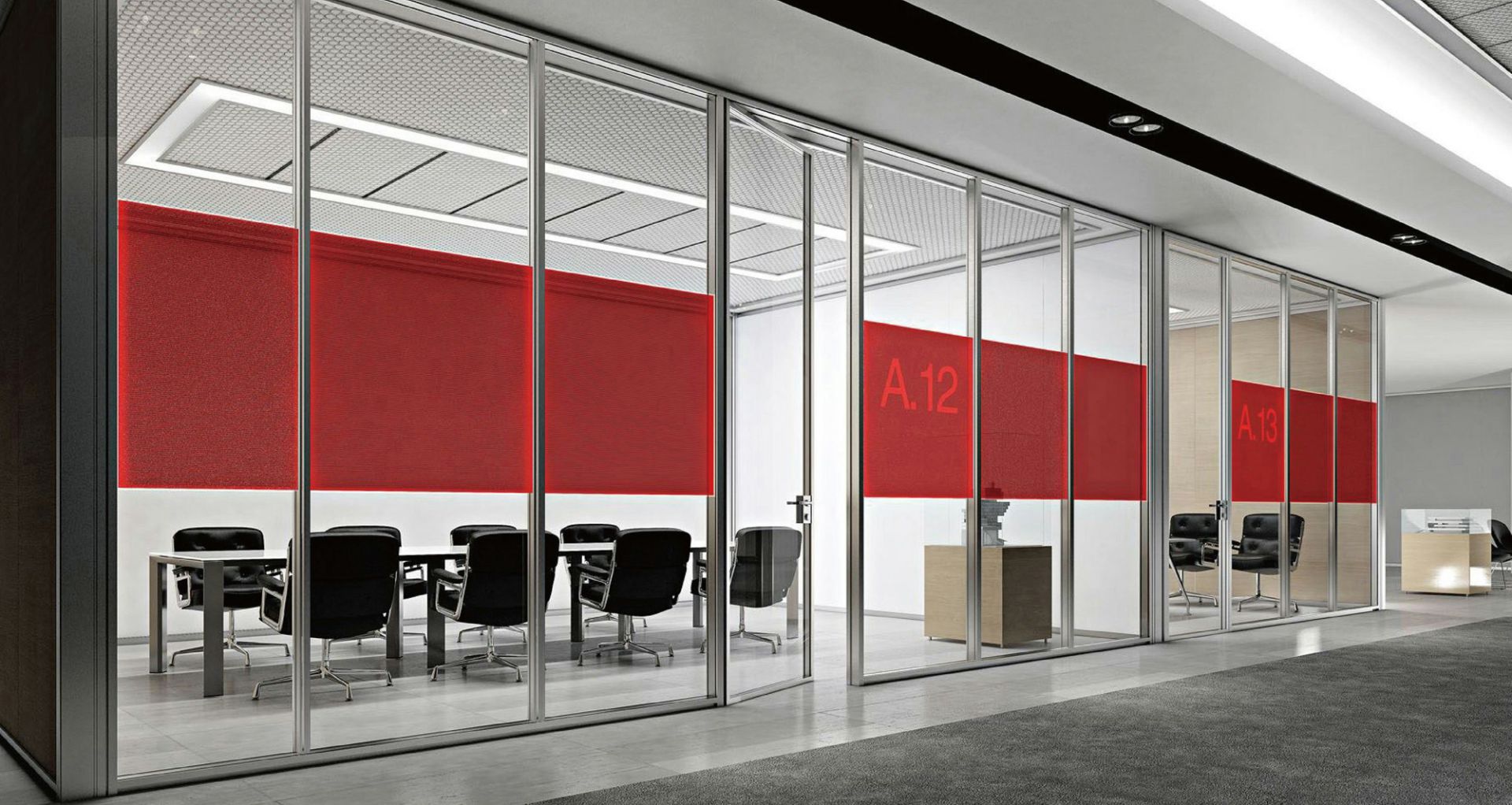 设计元素吸音板、百叶、丝印玻璃、设备带